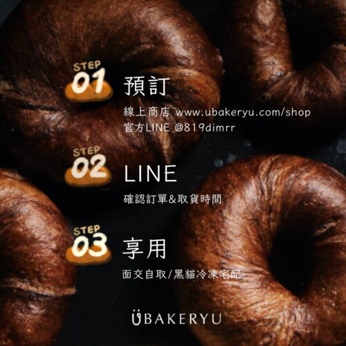 享用美味只需簡單三步驟!可選擇在官網或官方LINE下單, 經過官方LINE確認訂單及取貨時間及完成囉!Ü Bakery將於每月21日推出一款新產品, 最新動態&隱藏版美味將更新於<線上商店>, 歡迎隨時來逛逛哦!