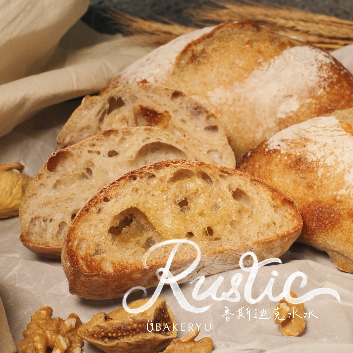 無油無糖的麵團, 品嚐經典原味的優雅麵香, 或享用清甜無花果乾搭上香脆核桃的魯斯迪克。推薦搭上起司番茄、淋上橄欖油, 升級成開放式三明治, 或是刷上鹹奶油回烤, 一口咬下酥脆喀滋!