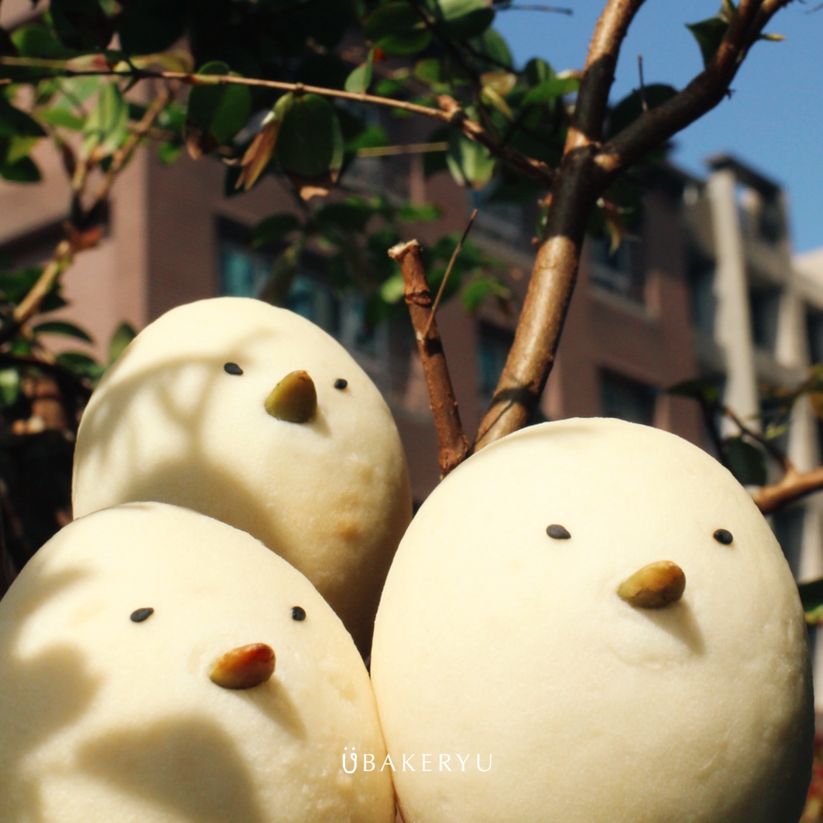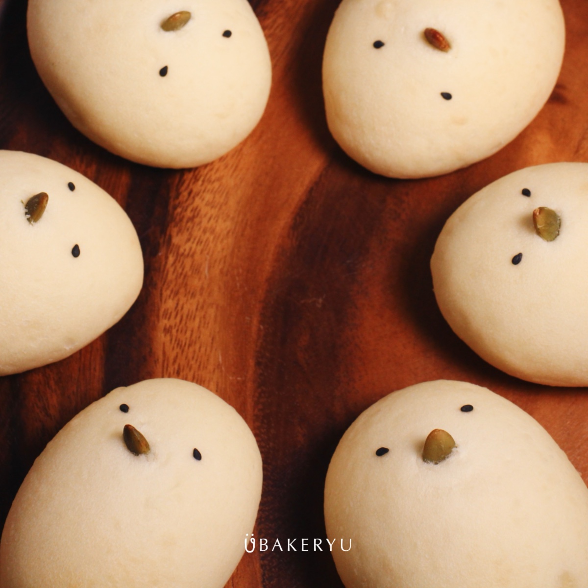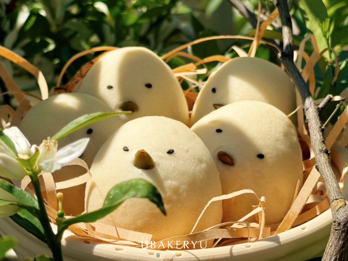 以日本大人氣的長尾山雀為靈感, 為了還原可愛圓潤和純白的模樣, 麵團特別降低糖份並以低溫烘烤, 減少容易產生棕褐色的「梅納反應」, 讓外觀呈現如長尾山雀雪白蓬鬆!