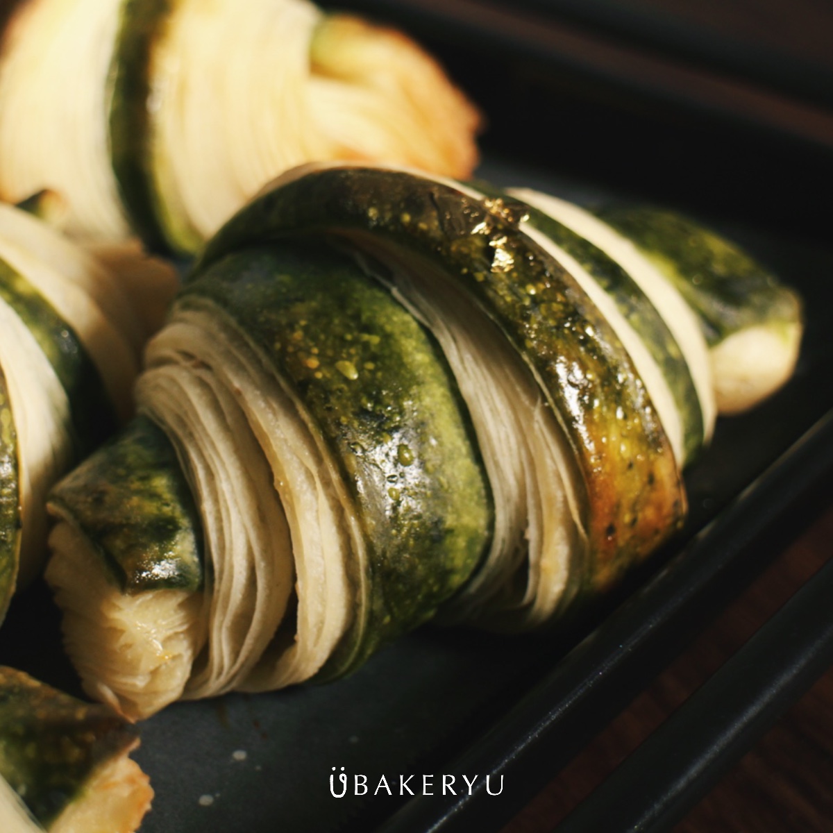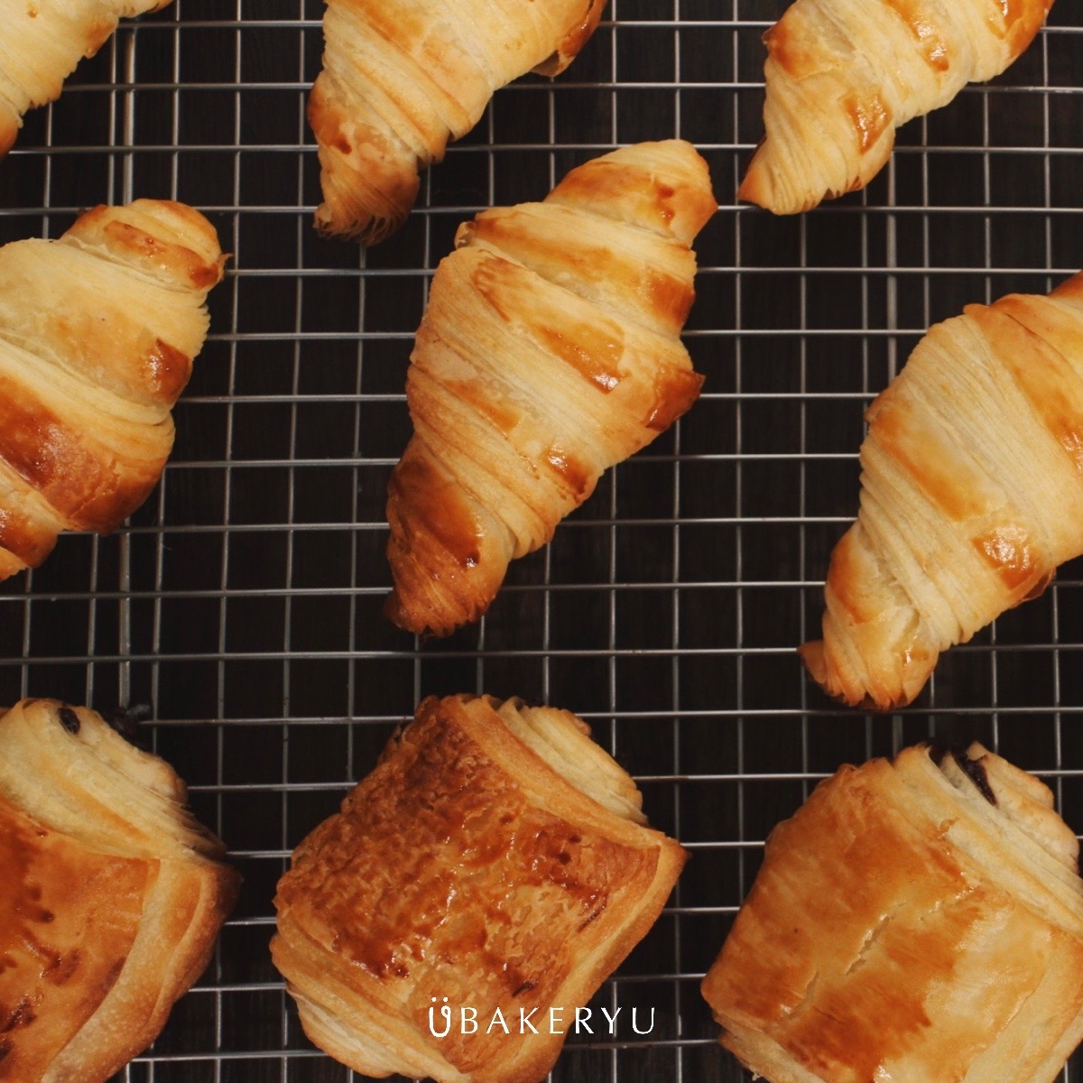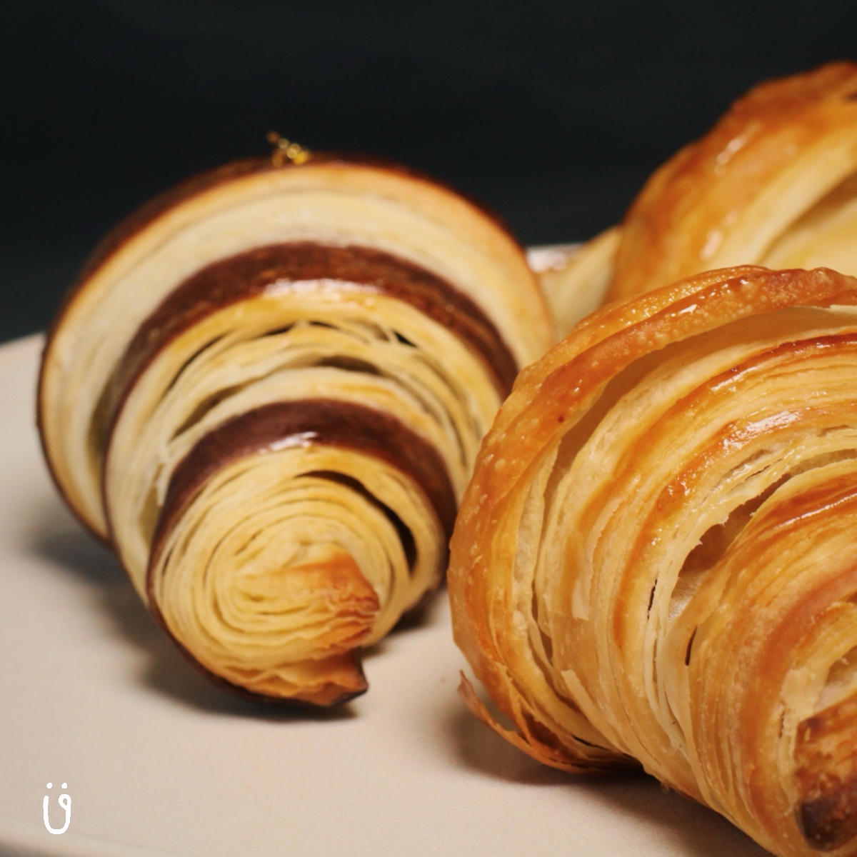 手工桿製的可頌, 經過製作油片、反覆摺疊、冷凍發酵